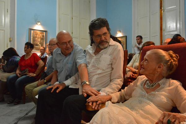 Del brazo de su esposo, Raidel Hernández, hace entrada a la sala donde se elogiará una vida de poesía y de amor. Viste enteramente de blanco y lleva el pelo cuidadosamente recogido. Detrás del sillón desde donde asistirá al homenaje, una foto de ella, toda de azul, algún tiempo antes. A su lado Abel Prieto, Miguel Barnet, Antón Arrufat. A sus espaldas, escritores, amigos, familiares, lectores.