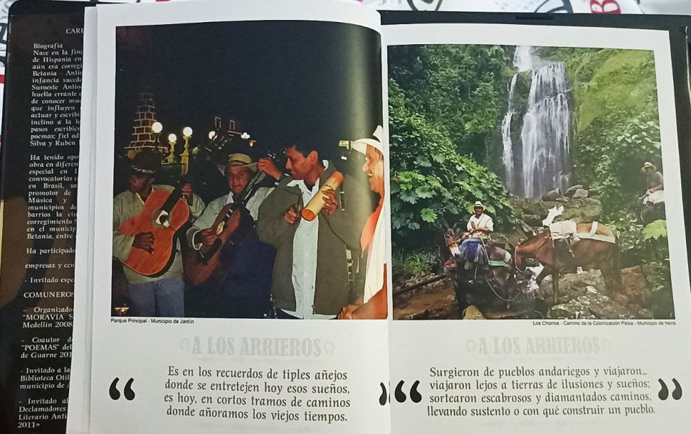 Un libro de noventa estrofas dedicado a los arrieros de la región de Antioquía, Colombia, es la propuesta que trae Carlos Alberto Valle Sánchez a la 31 Feria Internacional del Libro de La Habana, dedicada a este hermano país. Se hace acompañar de una delegación de Poetas al Viento, trae las fotos del libro impresas y las esparce por doquier. Además, usa un atuendo tradicional de su pueblo y confiesa que Cuba le ha encantado, pero que sigue extrañando la arepa en su desayuno.