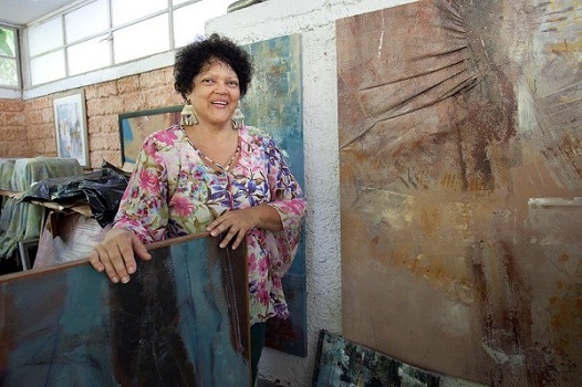 La pintora Julia Valdés (Santiago de Cuba, 1952) como la gran mayoría de sus colegas, está por estos días viviendo el sensato y necesario recogimiento en su casa/taller. Allí continúa creando desde su personal universo abstracto, ese que la ha convertido en una de las creadoras cubanas contemporáneas con un sello distinguible en el que las texturas tienen un rol marcadamente protagónico.