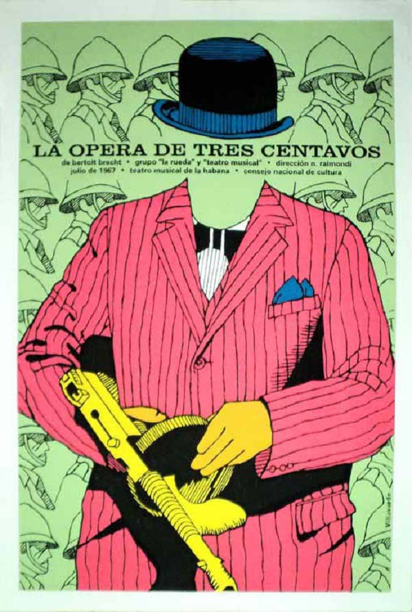 Cartel cubano de La ópera de tres centavos (Héctor Villaverde, 1967), obra teatral de Bertolt Brecht.
