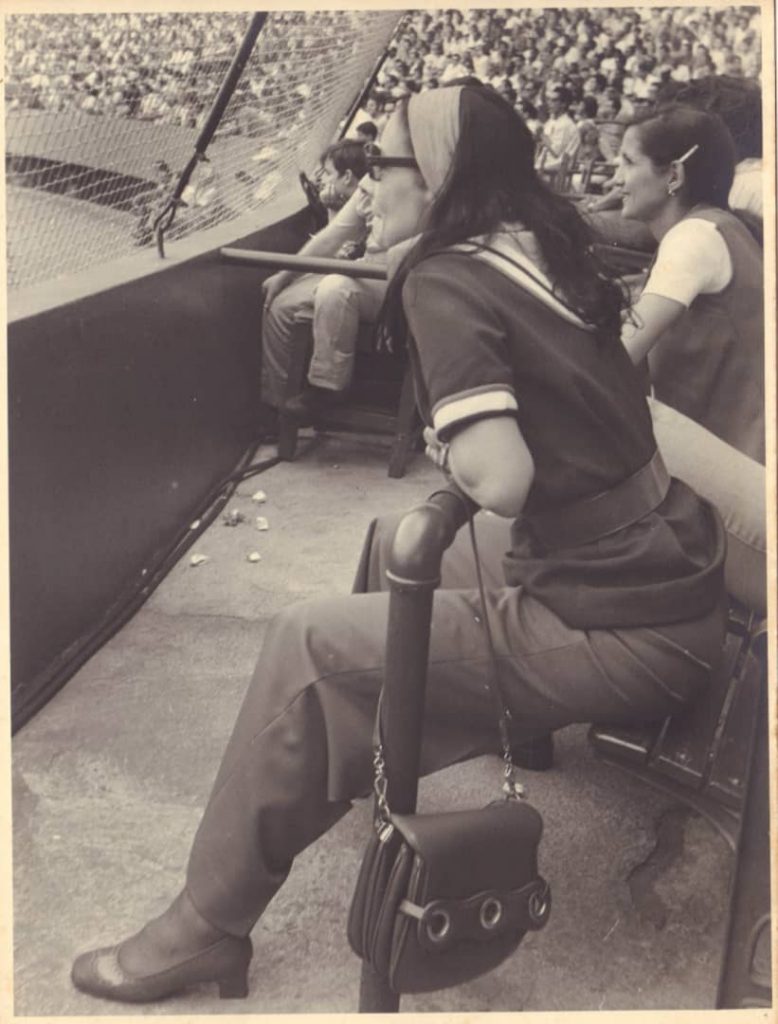 Un muy apreciado amigo, el Dr. Félix Julio Alfonso, historiador y profesor universitario de alto fuste, muy interesado en la historia y trascendencia del béisbol en la cultura cubana, me ha hecho llegar, muy gentilmente, un nuevo testimonio de las “sorpresas” que todavía Alicia nos sigue dando. Son dos fotos de ella presenciando, muy concentradamente, un partido de pelota en el hoy estadio Latinoamericano, en el barrio capitalino del Cerro. Me ha sorprendido mucho ver esas fotos por dos razones, la primera porque en mis 51 años a su lado nunca me dijo, ni le oí decir, que había ido a ver un juego de pelota a ese estadio y porque como biógrafo suyo, nunca vi esa foto publicada en ningún órgano de la prensa cubana, aunque la revisé exhaustivamente durante años.