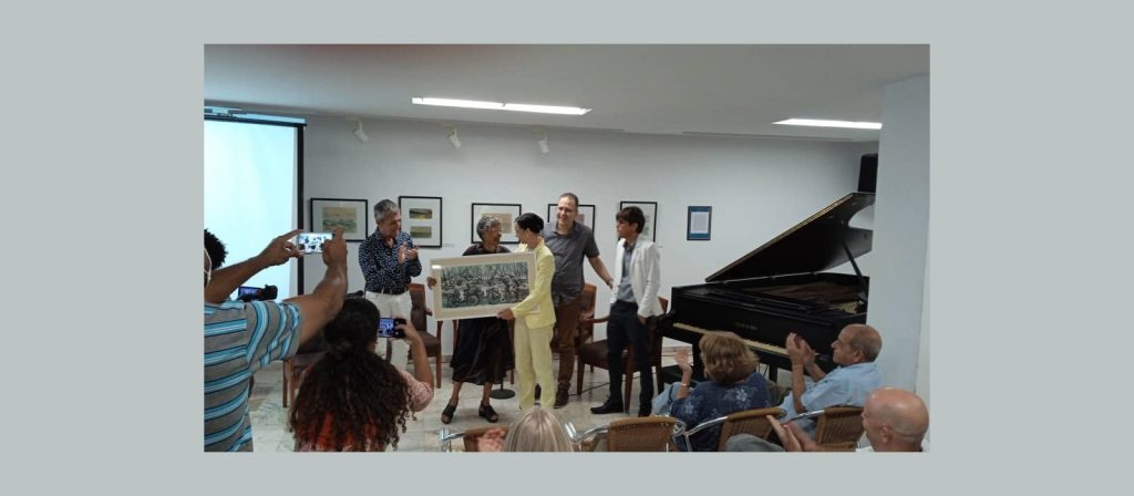 Luis Morlote, a su vez, entregó a Viengsay Valdés una pieza original de Lesbia Vent Dumois y una fotografía con figuras relacionadas a los orígenes del BNC y de la Uneac.