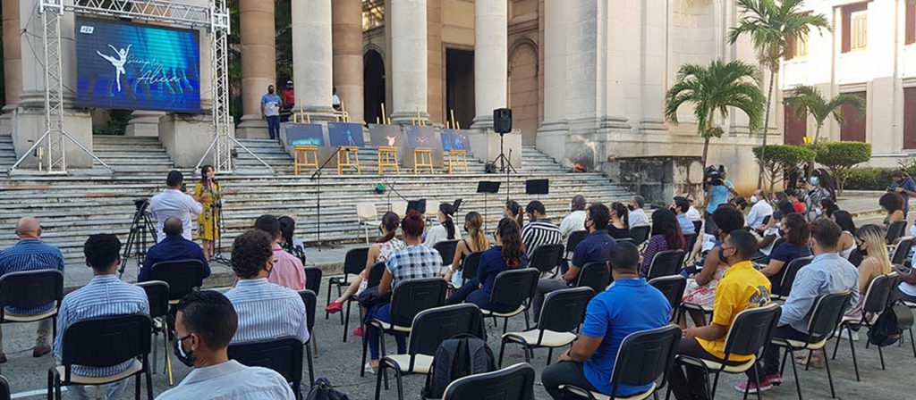 Sin lugar a dudas, el punto cimero lo constituyó el acto de desagravio celebrado en el estadio de la bicentenaria casa de altos estudios, el 15 de septiembre de 1956, con motivo de la agresión que sufrieran nuestra gran bailarina y la primera compañía profesional de ballet en nuestro país, fundada por ella y los hermanos Fernando y Alberto Alonso, por no prestarse a las maniobras de la tiranía batistiana, que trató de convertirlos en agentes propagandísticos del sanguinario régimen. A partir de 1959, con la llamada Operación Cultura —celebrada con una función masiva en el coliseo de la Ciudad Deportiva el 1ero. de junio de ese año—, ese histórico acto ha sido conmemorado de manera muy hermosa por ambas instituciones. En la mañana de hoy, en la antigua Plaza Cadenas, ahora Plaza Agramonte, la presidenta nacional de la FEU, Karla Santana, acompañada por miembros de esa organización, autoridades universitarias y una representación del Comité Nacional de la Unión de Jóvenes Comunistas, presidió el acto de conmemoración del aniversario 65 de aquel histórico acto. El evento contó con la presencia de Viengsay Valdés, primera bailarina y directora general del Ballet Nacional de Cuba (BNC), así como de un nutrido grupo de integrantes de nuestro Ballet. En dicho acto, la presidenta de la FEU, con emotivas palabras, rememoró tan históricos lazos e hizo entrega a Viengsay Valdés del simbólico ramo de rosas rojas, que recuerda cada año el afecto y la confianza en el futuro que han mantenido los estudiantes universitarios y los artistas del ballet cubano. También se le hizo entrega de un diploma de reconocimiento en ocasión de tan importante efeméride.
