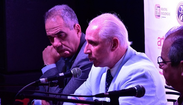 De izquierda a derecha, Jorge Ignacio Coromina, corresponsal permanente de Excelencias en Cuba, José Carlos de Santiago, presidente del Grupo Excelencias, y Alexis Triana, editor de la revista Arte por Excelencias. Foto: Excelencias