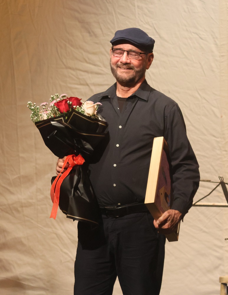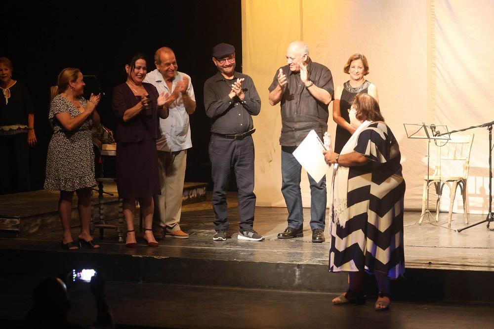 Fue sentido el tributo ofrecido por cantantes, actores y amigos en la tarde de este viernes en la sala teatro Hubert de Blanck, antes de otorgarle, con los honores merecidos, el reconocimiento. Antes de que el ministro de Cultura, Alpidio Alonso, le cediera el premio y le abrazara, ya Aramís había sido abrazado. Desde los versos compartidos por la actriz Paula Alí hasta la canción de Lourdes Torres… desde la representación de El Conde Alarcos, de José Jacinto Milanés, hasta la lectura del cuento “Los pocillos”, de Mario Benedetti… desde el monólogo de la actriz Doris Gutiérrez hasta que Miriam Learra lo hizo pararse del asiento para juntos actuar.