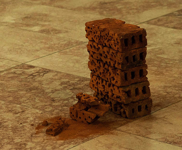 Afiliado a las propuestas instalativas, Moisés Bermúdez (1998) ha logrado desarrollar un discurso personal que revela la inseguridad del mundo contemporáneo. Sus experiencias parten de la capacidad o incapacidad del ser humano para superar aquellos obstáculos que lo privan del pleno desarrollo social. Resemantiza objetos comunes para darles un valor antropomórfico a partir del concepto de la resiliencia tal como se aprecia en Columna y rajado, donde presenta dos tipos de comportamientos impulsados por el accionar de la persona que debe asumir posturas diferentes ante disyuntivas abruptas. Los ladrillos adquieren entonces el valor simbólico necesario para exponer actitudes humanas en tiempos difíciles.