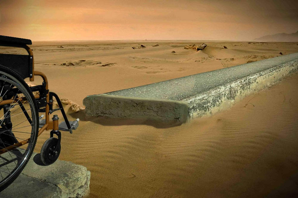 Ante situaciones perturbadoras en que vivimos habría que preguntarse cómo sería la existencia del minusválido. Rubén Pareja (1968) transmite sus experiencias personales mediante la instantánea fotográfica. Con habilidad y dominio de las herramientas digitales logra crear composiciones visuales que sintetizan la minusvalía. Pese a las limitaciones corporales que presentan sus personajes, no hay un ápice de melodrama ramplón, sino más bien se observa una actitud humana con igualdad de derechos ciudadanos que reclama con creces la razón de existir dentro de la sociedad. Por esa actitud ante la vida el artista del lente acude por lo general a situaciones irónicas o de humor cáustico para exponer su condición de minusválido ante un mundo de normativas diferentes agudizadas por los tiempos de pandemia, como se aprecia en la obra Interrupción.