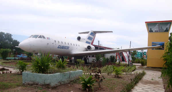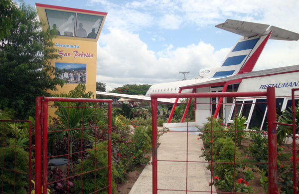 A nuestra derecha, en plena zona urbana, aparece súbito un reluciente Yak-40, en actitud de comenzar el taxeo para el despegue, y una torre de control aéreo con un letrero visible que reza Aeropuerto de San Pedrito. Naturalmente, la aeronave, de la época soviética, hace años dejó de estar operativa, y la torre de control es solo decorado de un complejo recreativo que incluye un parque-jardín y un restaurante.