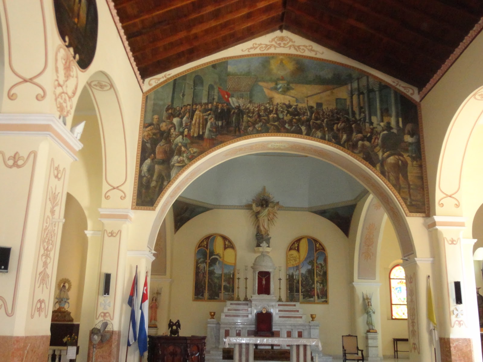 El mural también refleja la bendición de la Bandera de La Demajagua, hacienda donde Carlos Manuel de Céspedes, el Padre de la Patria, les diera la libertad a sus esclavos el 10 de octubre de 1868, acto que marca el inicio de las gestas libertarias cubanas. Fue el párroco Don José Batista quien bautizó la bandera que aparece en el cuadro en manos del general Luis Marcano.