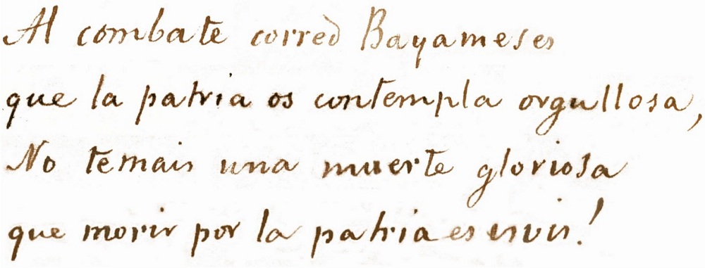 “Nuestro Himno Nacional / La bayamesa / Himno de Bayamo es una obra músico-literaria de extraordinaria belleza artística, conmovedora de los más profundos sentimientos patrióticos”.