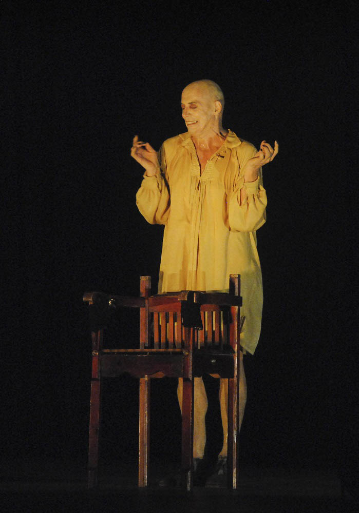 Pompeyo Audivert es esta vez un actor en trance que deja que recorran su cuerpo, siete personajes distintos. La suya es sin duda, una clase de histrionismo, de técnica depurada. Su columna vertebral funciona como eje de cada una de las caracterizaciones que él asume con la relajación-tensión necesarias para que nada se desborde, para que la energía fluya de manera adecuada. Su voz, por supuesto, también caracteriza, sin que exista desavenencia alguna entre el arquetipo dinámico de cada rol y su identidad vocal. El juego de estatus, junto a las sensaciones y los deseos, suma detalles que no se repiten y que en esta puesta se expresan desde diversos ámbitos que son y no son los del teatro mismo.
