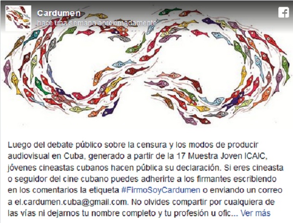 del manifiesto, con la etiqueta: #FirmoSoyCardumen. Foto: Captura del muro de Facebook de Cardumen