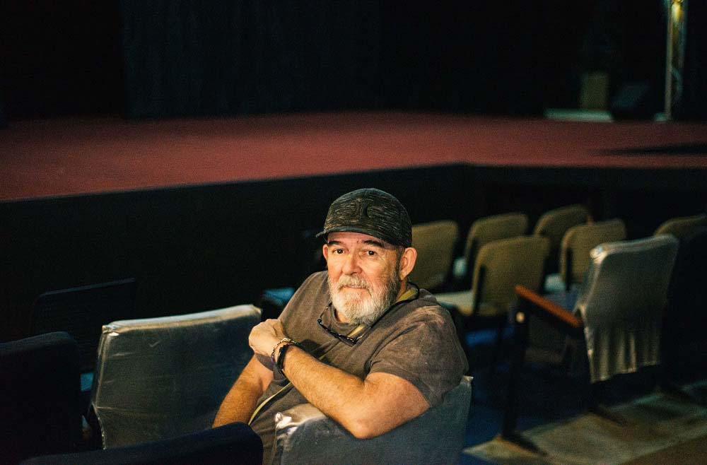 La oficina del director de Teatro El Público pareciera la sucursal de un camerino. Igual de histriónica. En un rincón reposan, sobre maniquíes, tres pelucas voluminosas de color negro y rojo. Quien las ve piensa en cómo se puede soportar semejantes cabelleras, pero así también es su escenario: grandilocuente.