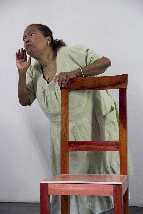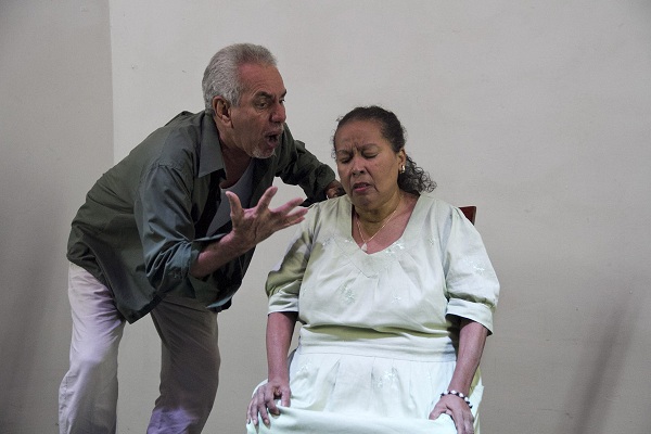Carmen Fragoso sortea sus limitaciones visuales y concentra su proyección dentro de un espacio reducido. Con memoria prodigiosa y cuidada dicción, encuentra expresiones y tonos precisos en cada uno de los roles —a veces más de uno en un mismo cuento—, y Denis Colina, también versátil, aprovecha las máscaras faciales de su expresivo rostro, de marcados rasgos, para encarnar en fugaces pasajes los singulares personajes que hacen la contraparte a la mujer en estas historias cubanísimas.