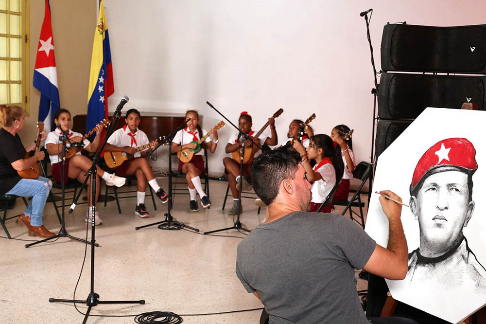 Cuba no podía ser indiferente a esta fecha y hasta la Casa del Alba —sitio donde convergen la cultura de la Mayor de las Antillas y Venezuela— llegó la música y la danza este lunes de la mano de los niños para rendir tributo al comandante bolivariano.