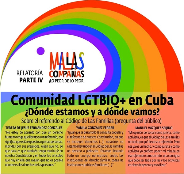 Fragmentos de las intervenciones de Yamila González Ferrer, Teresa de Jesús Fernández González y Manuel Vázquez Seijido en el panel “Comunidad LGBTIQ+ en Cuba. ¿Dónde estamos y a dónde vamos?”, conducido por Kenneth Fowler y transmitido en el canal-emisora colaborativo Malas Compañías, el 16 de mayo de 2021.