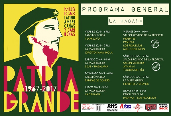 El Festival de Músicas Latinoamericanas y Caribeñas, Patria Grande, abrirá esta tarde las presentaciones de su cuarta edición, en la capital del país. Dedicado al 50 aniversario de la caída del Che y al décimo de la fundación de la Agencia Cubana del Rock, el evento tiene entre sus propósitos acercar al público cubano la música urbana y de pensamiento producida en el continente.