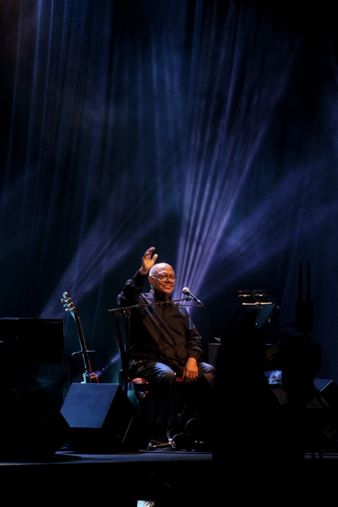 Con la entereza de la voz de este cantautor y guitarrista cubano, fundador de la Nueva Trova, y las letras de Comienzo y final de una verde mañana inició el recital que se extendió poco más de una hora. Desde las gradas del centro deportivo, los asistentes a esa cita con la buena música coreaban canciones que han marcado a varias generaciones de cubanos.