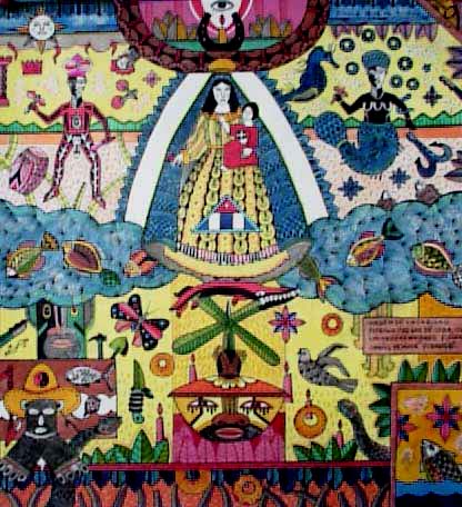 Líneas y colores, leyendas y metáforas, soslayan toda una suerte de luz en la cual se afirman los tonos cálidos y contrastantes con el patakí del orisha. Trato de equilibrar la distribución básica de la obra con la tradición y la lectura que la misma pueda aportar al espectador, sea profano o creyente. Cada una asimila y se afirma en su propio yo, y quizás en su propia mezcla de africano, español y cubano. El animismo que permea a la religión africana me invita a dar vida. Ubico ojos por todas partes; bocas, manos y pies a cualquier objeto de culto, sea vegetal o mineral.