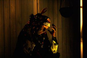 El vino fue vertido en los vasos. Eugenio dio la bienvenida y se brindó —también los actores— antes de que la ceremonia comenzara. En el espacio libre que quedaba entre las dos mesas, sin objetos, sin más luz que la proveniente de las velas y con trajes propios que ni siquiera Eugenio había visto antes, volvimos a realizar el espectáculo.