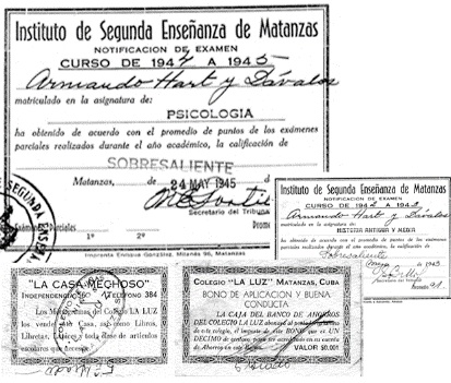 Sin haber cursado el sexto grado y después de una preparación intensiva en el verano logró pasar con éxito los exámenes de escolaridad de ese curso, por lo que fue matriculado directamente en el Instituto de Segunda Enseñanza de Matanzas en 1942.[4] En este prestigioso plantel estudió hasta que culminó sus estudios de Bachiller en Letras con resultados notables y se graduó en 1947.[5]