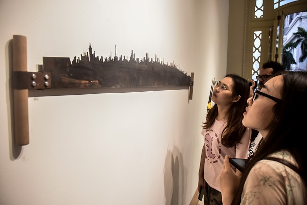 Sobre las piezas, la curadora agregó: “Las instalaciones en papel tienen una belleza increíble, flexibilidad y texturas impresionantes. Por otra parte, el trabajo con metales, con un paisaje hecho en un serrucho y edificios emplazados en bandas de hierros de tamaño medio. Tenemos una instalación de libros con escritura en caracteres chinos, en la que se reflexiona sobre el pasado, el presente y el futuro. Finalmente, se verá una obra que con un mínimo de recursos dice simplemente ‘Leave me alone’ (Déjame solo), un mensaje de la artista más joven que participa en la exposición, que alude a la importancia de saber decir no. Esa frase en sí misma establece un diálogo con cualquier espectador”.