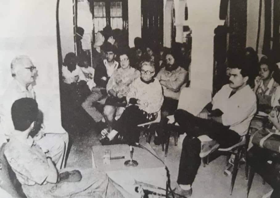 Mi ingreso a la Brigada Hermanos Saíz fue la inmersión en la práctica cultural desde una perspectiva más amplia, ecuménica y abierta, a partir del estrecho vínculo con todas las manifestaciones artísticas —algo que no me había dado el ISA, por haberme “colado” en el primer curso, solo convocado para trabajadores del sector artístico, aunque yo no lo era, y que operaba en horario diferente. Con una experiencia fugaz previa, la del banquete que había sido seguir de cerca el atractivo segmento cultural del XI Festival Mundial de la Juventud y los Estudiantes, celebrado en La Habana en 1978, la entrada en la Brigada me abrió al diálogo “de tú a tú” con otros muchos jóvenes creadores que cubrían un amplio rango de edades, entre la salida de la adolescencia y los 35 años, y que sudaban innumerables inquietudes, en coloquios, exposiciones, conciertos, reuniones en muchos lares, hasta recalar en la Casa del Joven Creador y en recorridos por la Isla y hasta allende los mares. La simple pertenencia a la Brigada Hermanos Saíz se traducía en aprendizaje permanente; me confrontaba con un movimiento de ideas útil para crecer y, a la vez, interactuaba con mi ejercicio profesional, primero como especialista de la Dirección de Teatro y Danza del Ministerio de Cultura, y luego como redactora, editora y directora de la revista Tablas.