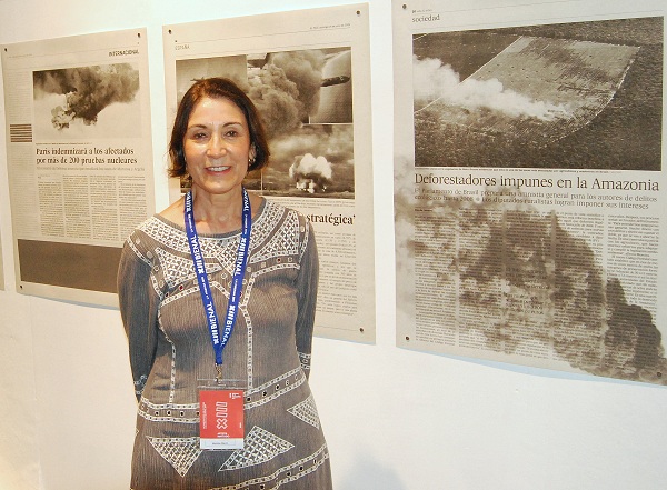 Se hace difícil el paso, hay que apartar hacia un lateral las inmensas telas para acceder a la muestra de la argentina. Ya dentro, observo las páginas de estos diarios, en blanco y negro —han sido despojados de los vistosos colores cromáticos con los que suelen aparecer—. En primeras planas o como subtítulos, sucesos vinculados con hechos que tienen como diana el humo, resultado de catástrofes naturales o inducidas por el hombre.