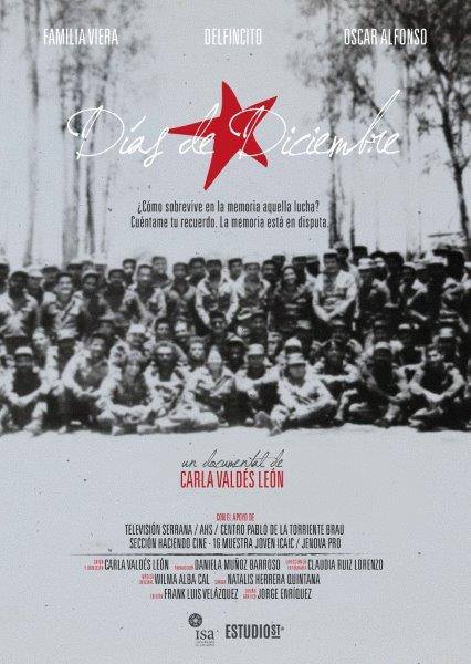Señal del interés y la preocupación de los jóvenes cineastas por el pasado y la historia de Cuba, documental de recuento y memoria, obra conmovedora e inquietante, Días de diciembre es la tesis de graduación de la realizadora Carla Valdés León, en la Facultad Arte de los Medios de Comunicación Audiovisual (FAMCA), y además acaba de ganar el premio al mejor documental (compartido con Casa de la noche, de Marcel Beltrán) en la Muestra Joven finalizada hace pocos días.