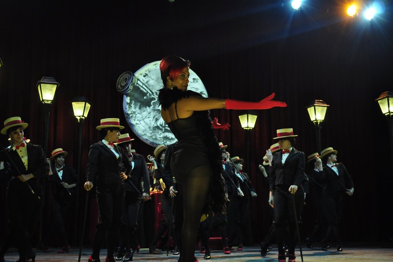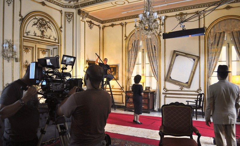 Pudiera decirse que, por ejemplo, Sunset Boulevard (1950) realizada por Billy Wilder para la Paramount, combina la magnificencia escenográfica de la Metro y las tinieblas claustrofóbicas de la Warner, y es cierto, solo que el registro de la cámara y la ambientación se concentran en la oscuridad, el misterio, la locura y la relación equívoca entre la mujer mayor y el detective. Desde que entramos en la mansión, hasta el final de la película, Bailando con Margot se recrea en la magnificencia de las verjas, los jardines, el rosetón del piso, las estatuas, los candelabros y la suntuosa escalera de mármol. Tanto lujo y adorno que los actores y actrices parecen hasta incómodos, “prestados” en semejante boato, hasta que el diálogo se olvida del cuadro robado y conduce la trama al pasado de Esteban y la pelea del pelea, filmada en el registro del cine silente, en blanco y negro, y con piano de fondo. La historia de Esteban y Margot, introducida en retrospectiva, es como otra película, que impone otros registros en la dirección de arte y el estilo visual, más cercanos al cine deportivo y el musical.