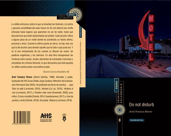 Un viaje de sensaciones, silencios e imágenes; un universo de sombras físicas y espirituales en el interior de un motel y sus alrededores, pero especialmente dentro de sus personajes, es la propuesta del libro Do not disturb, del joven escritor espirituano Ariel Fonseca Rivero, ganador del Premio Calendario de Narrativa (2020) que otorga la Asociación Hermanos Saíz. La riqueza narrativa y la solidez de la obra definen, entre otros rasgos, esta entrega de la Casa Editora Abril, que contó con la edición y corrección de Laura Álvarez Cruz, y con la fotografía de interior y cubierta de Lino Valcárcel.