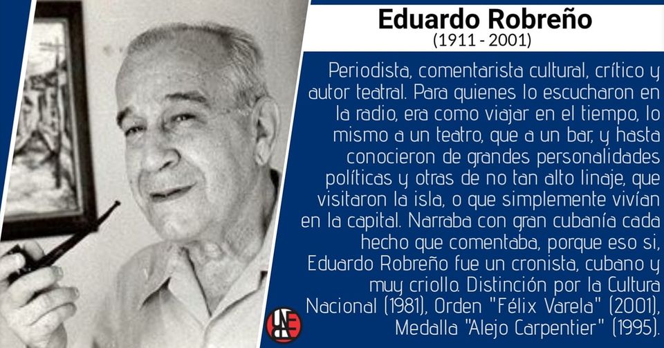 Tuve el placer y el honor de conocer al doctor Eduardo Robreño. Lo primero, porque se trató de un comunicador por excelencia, de conversación inagotable; lo segundo, porque escucharlo era asistir a una clase de historia viva, en especial si se refería a la del teatro en Cuba.