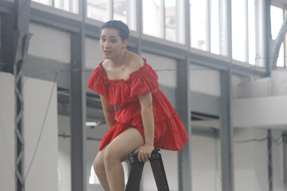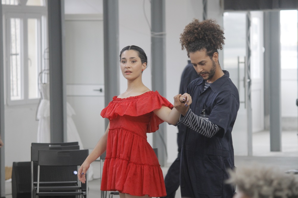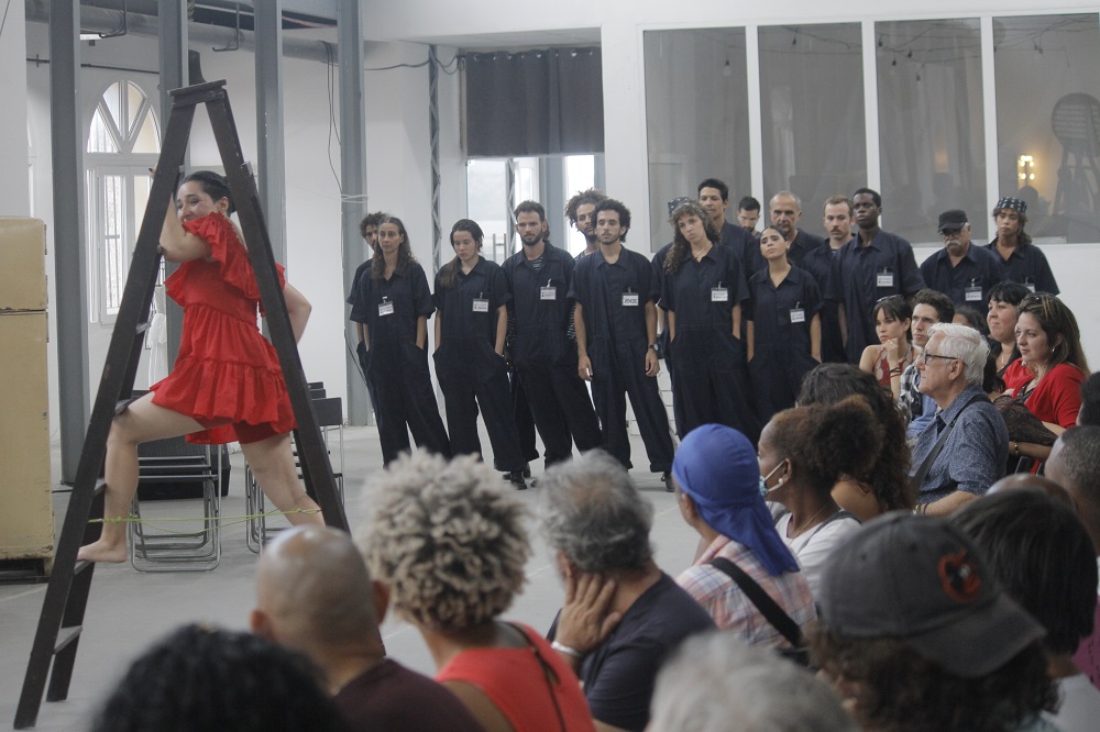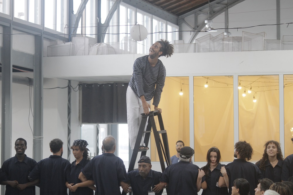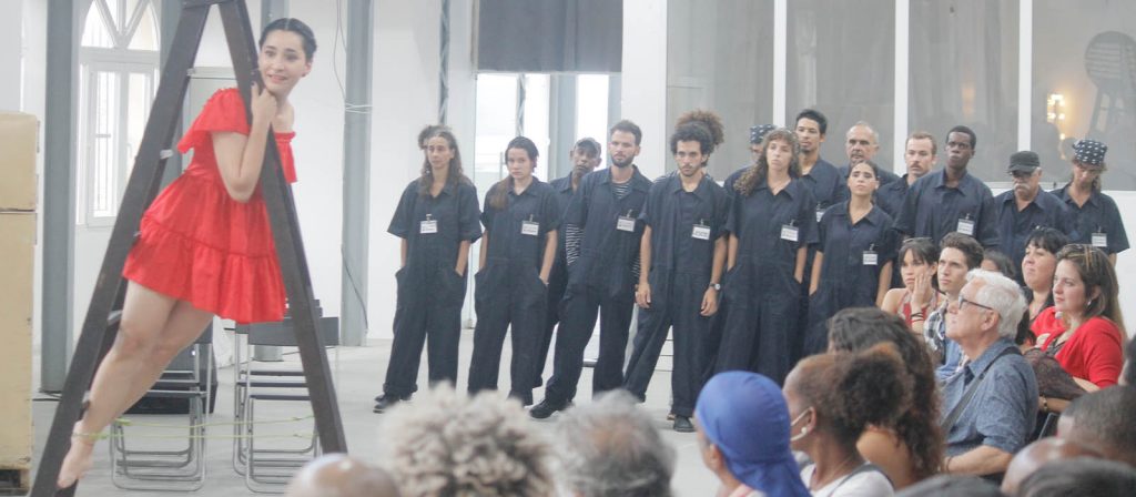 “Hacemos una especie de calentamiento aquí, entre todos, con baile y canto, y después caminamos hacia allá, y el público entrará por la última puerta, y el mar ahí, ¡mira! por las ventanas, está ahí cerca”. Nada es casual.