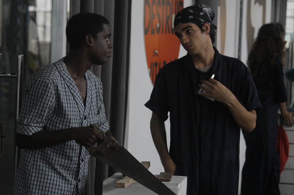 Me atendió Ariel. El actor, de apellido Zamora, ya sabía yo. Vestido con un overol azul oscuro, cual obrero de la vida, con su solapín al lado izquierdo que lo identificaba, como a los demás. Le atiende “…”. Atento y afable, explicando que hay tres desplazamientos para el disfrute de la obra y el primero es ahí, afuera del salón ambientado para ello, en ese espacio compartido con los cuadros de los “vendedores de arte” en el piso superior de los antiguos Almacenes San José.
