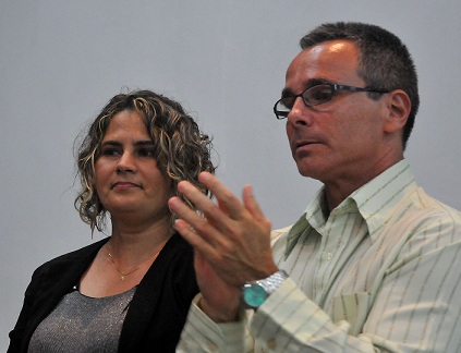 Yanetsy Pino Reina y Rafael de Águila, durante la ceremonia del Premio
