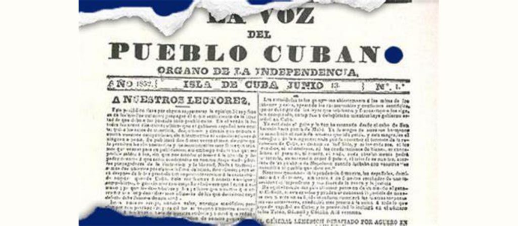Con el subtítulo Órgano de la Independencia, el periódico La Voz del Pueblo Cubano llama a los nacionales a combatir por la libertad, a luchar contra la tiranía entronizada, a derrocar el gobierno que representa a España.