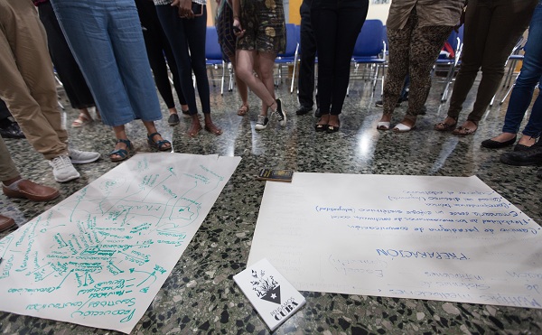 Como es habitual en este tipo de evento, las cuatro horas de intercambio no fueron suficientes. Todos tenían cosas por decir, incluso había muchas manos levantadas en el momento en que Liriam propuso terminar antes de que el debate se extendiera indefinidamente. No fue una jornada estéril. Testigo de ello, aquel papel inicialmente vacío estaba ahora repleto de ideas desordenadas e inconclusas. Los organizadores propusieron la última actividad de la tarde: definir en una palabra la experiencia vivida. De izquierda a derecha uno utiliza “útil”, otro “necesaria”, el siguiente “satisfactoria”; quien me antecede “interesante”. Mi turno. Estaba indeciso, al final me quedé con “reto”. Mirando en retrospectiva, no era una definición alejada de la realidad. Hacer realidad el viejo sueño de una sociedad mejor es un desafío que solo entre cubanos podemos resolver.