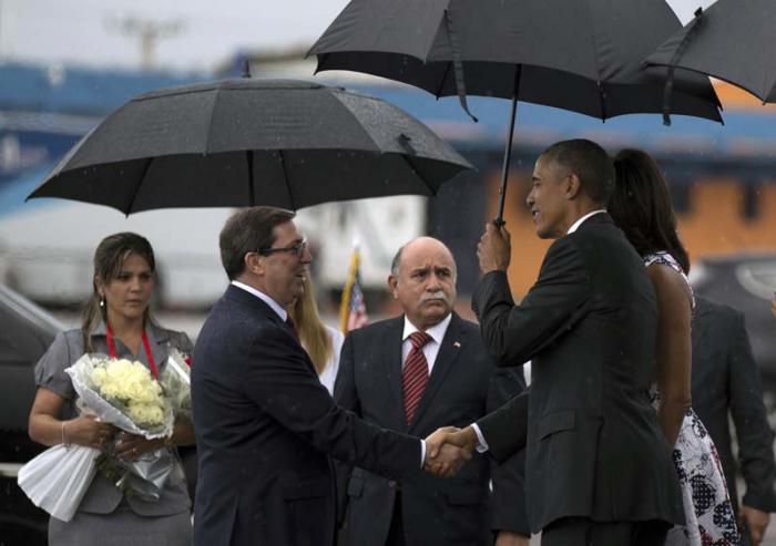 En la terminal 1 del aeropuerto internacional José Martí de La Habana, Obama y sus acompañantes fueron recibidos por el canciller cubano Bruno Rodríguez Parrilla, el embajador cubano en EE.UU. José Ramón Cabañas y el encargado de negocios de la embajada de EE.UU. en la Isla Jeffrey DeLaurentis, entre otras personalidades.