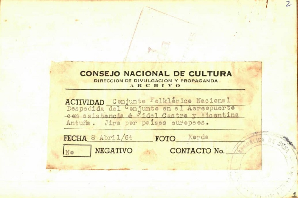 Dicen que el Conjunto es la única compañía danzaria a la que Fidel despidió antes de un viaje. El fotógrafo Korda registró la ocasión.