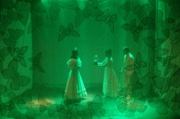También la escena final, con los zapatos de Pilar al centro, tras el relumbre del cristal y entre el revuelo de mariposas del telón traslúcido que se corre en el proscenio, es visualidad insuperable al compás de los acordes musicales. Destaca Zenén Calero una vez más, como responsable de una cuidada atmósfera plástica, y Rubén Darío en la articulación feliz de los componentes de la teatralidad. Los zapaticos de rosa conserva los bríos de hace diez años y deleita a nuevas generaciones de espectadores junto con los que regresamos a repetirla.