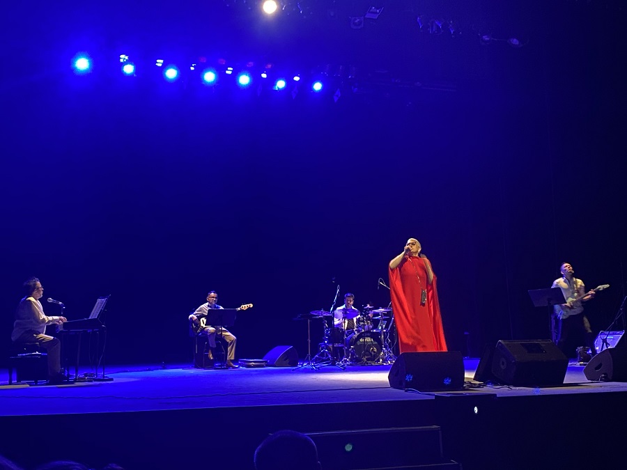 Vestida de largo rojo sangre y con botas negras, fue dueña de una hora y media de canciones, de recuerdos, de coros compartidos, de aplausos y vítores, de algunas lágrimas y de emociones sinceras.