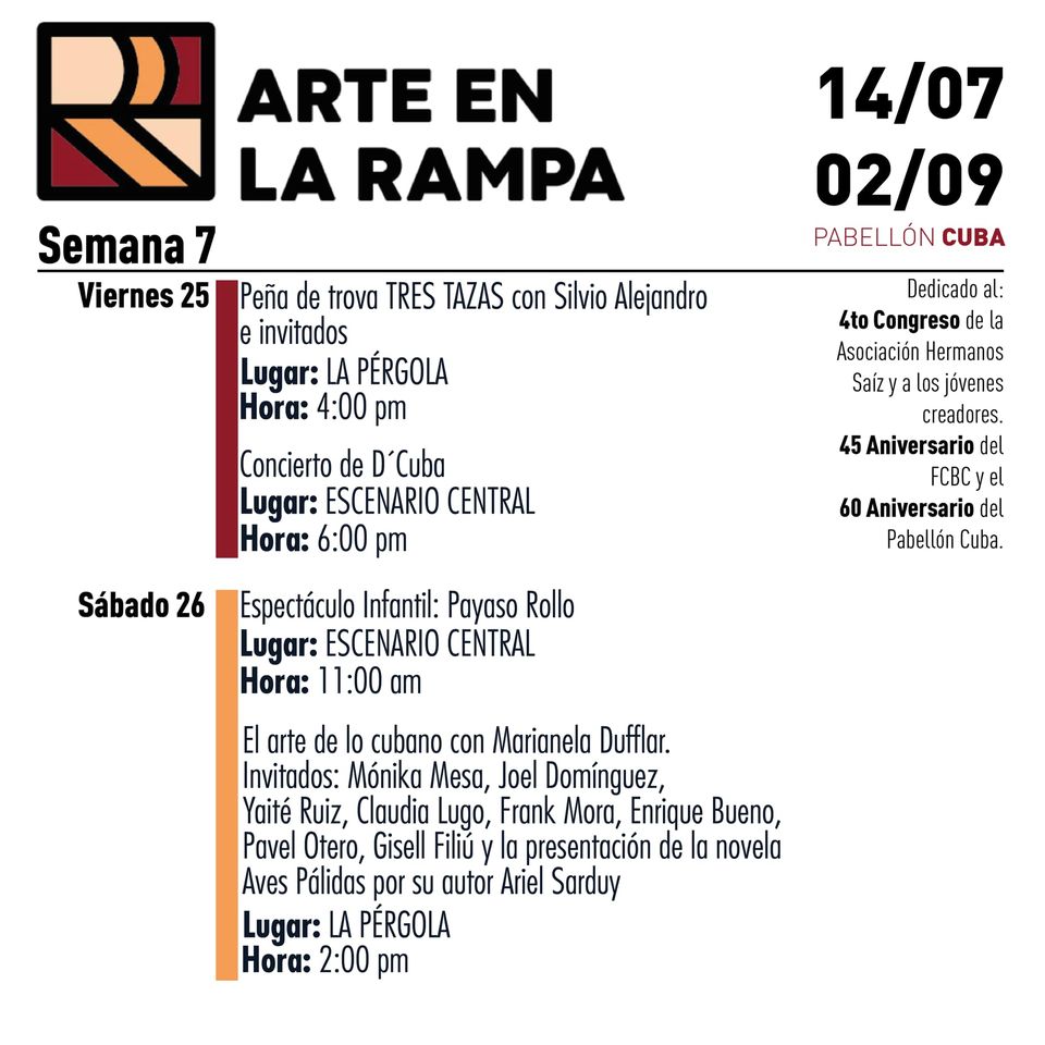 También habrá presentaciones de valiosos exponentes de la música cubana, la danza, las artes plásticas, la literatura, el teatro, y la creación para niños, entre otras manifestaciones.