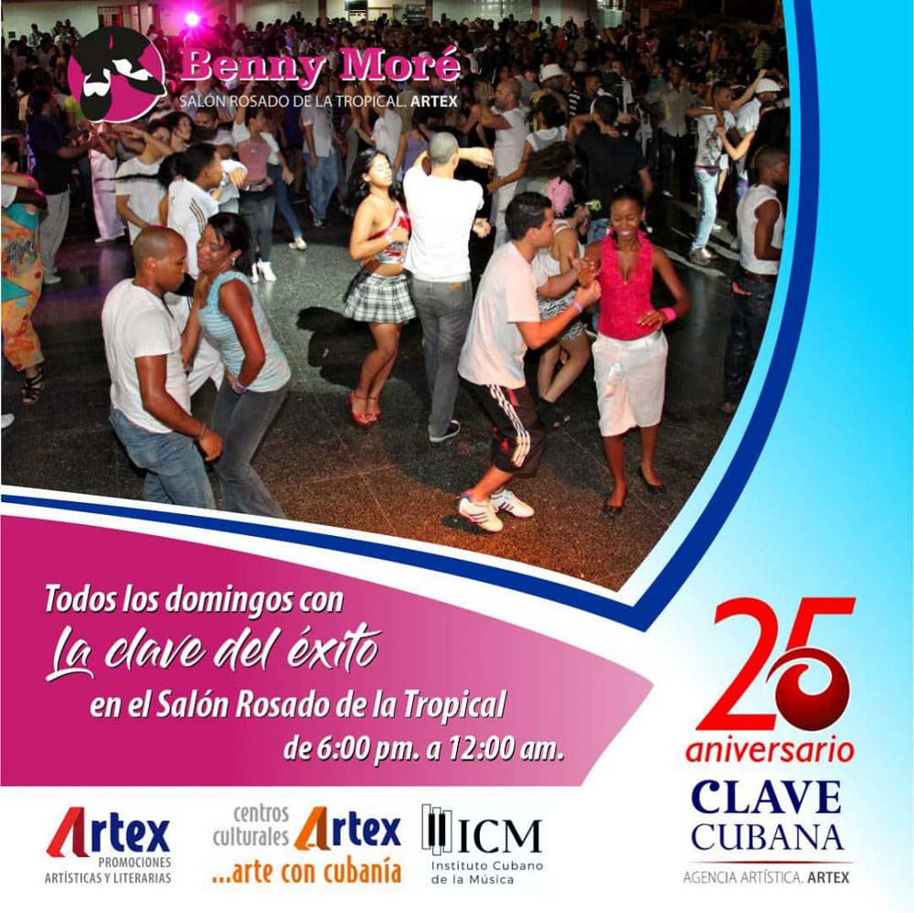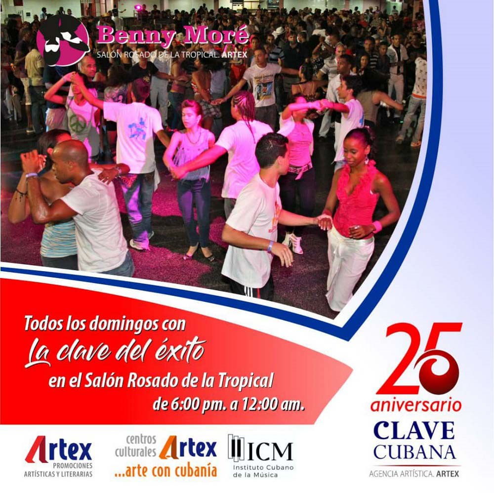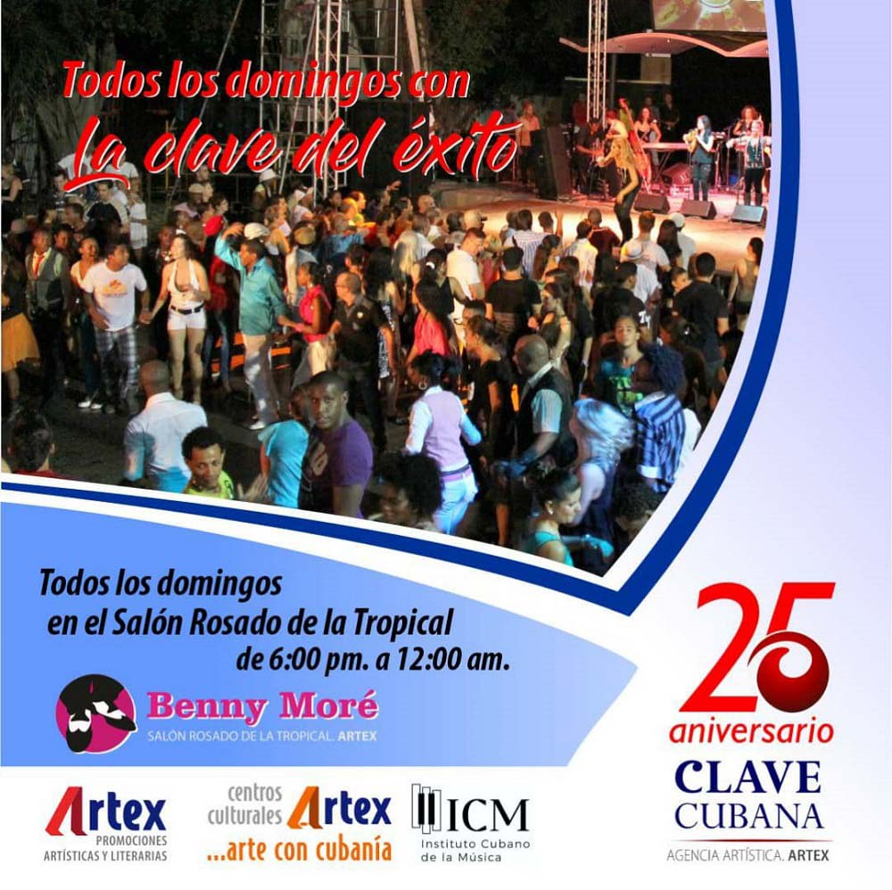 La Agencia Clave Cubana comienza sus festejos por la jornada de la cultura cubana, este mes de octubre, unido al aniversario 25 que cumple de fundada la agencia de representación artística. Todos los domingos se presentará el proyecto, La Clave del Èxito, en el Salón Rosado de la Tropical la cita será de 6:00pm a 12:00am. Contaremos con el proyecto audiovisual Cuba Show, sorteos, juegos de participación, animación, orquesta en vivo y otras sorpresas. Un espacio para divertirse con música popular bailable con la puesta en escena de toda la diversidad del catálogo de la Agencia Clave Cubana: