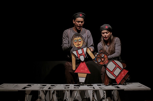 Sobre la escena, el elenco integrado por Elizabeth Aguilera, Yasiel Fabá y Abel Acosta, se desdoblan en roles que exigen cualidades propias del oficio, sobre todo versatilidad. Actúan, animan, asisten, cantan, se dejan llevar por la plasticidad del entorno y en él forman cuadros visuales de una factura digna de los fotógrafos más exigentes. En ese camino se concentra la arquitectura de una puesta que hace énfasis en el enfrentamiento de dos niñas jalonadas por un dilema de apariencia elemental y de fondo punzante, un dilema del que son portadoras y víctimas.