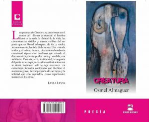 No, no es una errata. El libro que fuera merecedor del premio Pinos Nuevos 2014 en la categoría de poesía se llama Creatura. A pesar de los intentos del Microsoft Office por corregir la palabra, así es como ha elegido Osmel Almaguer nombrar este libro suyo que salió por la editorial Letras Cubanas en el 2015. El título en latín remite a la palabra criatura, que igualmente remite a la palabra crear, que alude también (en este caso) a la palabra poesía.