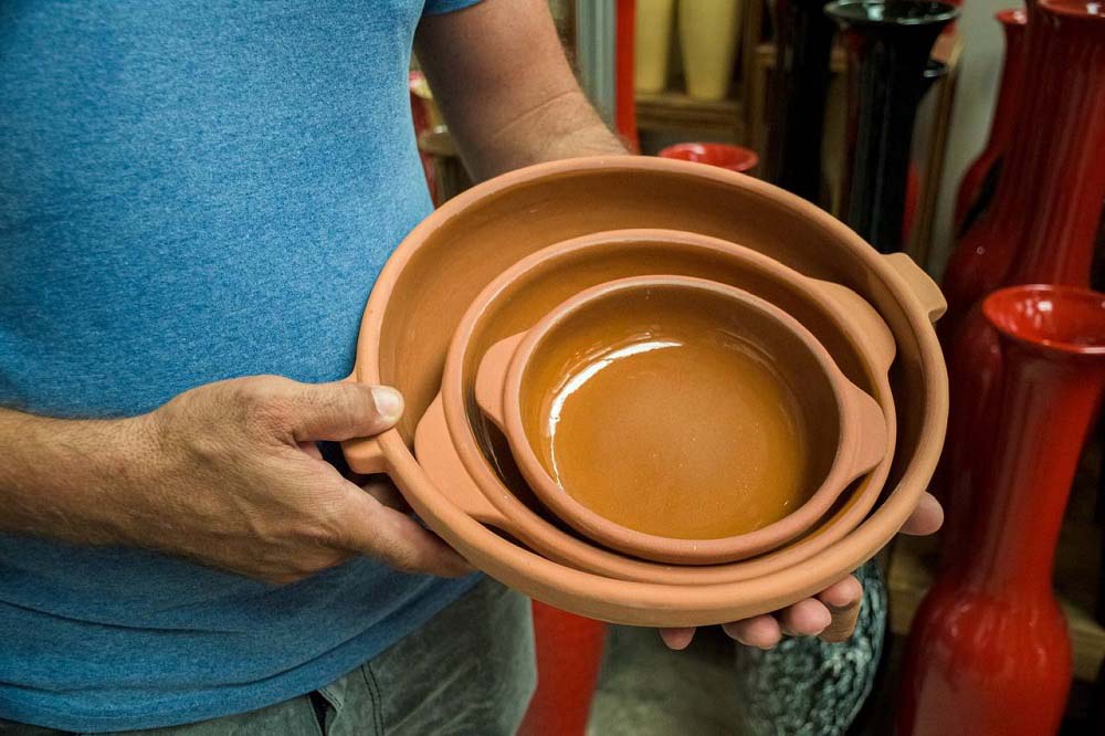 “La técnica consiste en introducir la pieza en un recipiente que tiene suspensión de vidrio con aglutinantes. Eso se sumerge y antes que se seque, se pinta esa pieza, se decora con óxidos metálicos y entones va al horno. De todo eso la base y la cubierta se funden en una sola y es lo que te da el acabado indeleble. El público gusta mucho de estas piezas de cocinas utilitarias; también hacemos marmitas para asar y cazuelas para cocinar paellas, siempre con la técnica de la mayólica”.