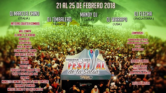 Los conciertos en el Parque Almendares comenzarán el día 22 de febrero, a las 9:00 p.m., con Yasser Ramos y su orquesta, El Niño y la Verdad, Papucho y Manana Club, y Habana D´Primera. Al día siguiente tocará el turno a Alain Pérez, Bamboleo, Adalberto Álvarez, y Puppy y Los que Son Son. Haila, Klimax, El Noro y los Van Van se subirán el sábado sobre la tarima y el último día estarán Combinación Cubana, Paulito FG, Manolito Simonet y su Trabuco, quien celebrará sus 25 años de vida artística y tendrá como invitada a Tania Pantoja, para dejar el cierre a Maykel Blanco y su Salsa Mayor.