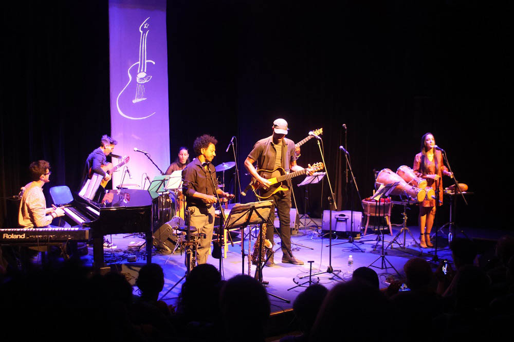 Estuvo acompañado por su banda, conformada por Idisan Aldana (saxo alto y soprano, flauta, clarinete y coros), Osniel Regal (bajo), Anamarys Ortiz (batá, misceláneas y coros), Adrián Viamonte (violín, piano, teclados y coros), Shakira Torna (set de percusión y coros) y Juan Miguel Sánchez (tres, guitarra eléctrica y coros).