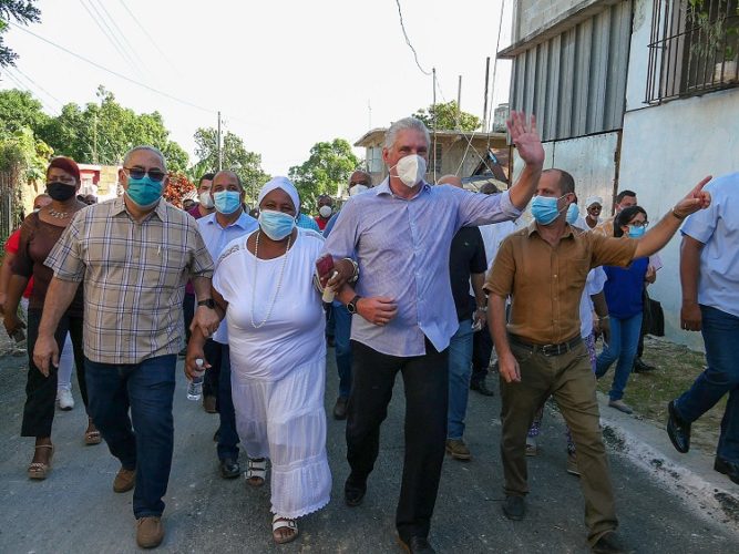 Con humildad no exenta de visible orgullo, Ileana Macías nos narra la visita que recientemente realizara a La Güinera el primer secretario del Partido y presidente de Cuba, Miguel Díaz-Canel. Poseída por su espíritu religioso, afirma que “con todo el respeto que merece, yo traje a esta casa a mi Presidente. Se lo presenté a mi Obatalá y a todos mis santos. Pedí para él mucha salud y toda la prosperidad que él quiere para Cuba”.