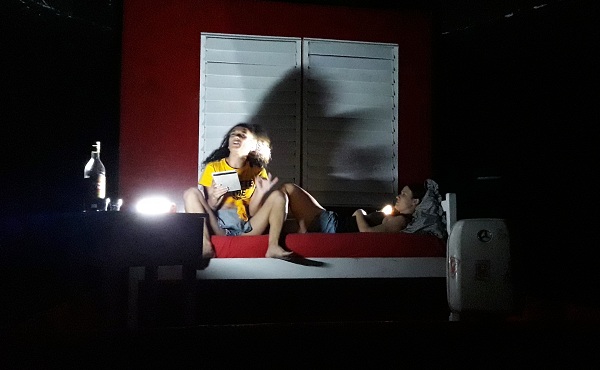 Si en Jacuzzi el agua era un medio compartido por los personajes, en el cual se sumergían durante la mayor parte del tiempo —en una bañera, hiperbolizada como el sueño imposible de poseer un jacuzzi y de gozar de cierto estatus de bienestar—, aquí es amenaza y presencia hostil causante del encierro, en tanto Ana y Eva, y luego Lilit, se guarecen de un huracán en un pequeño cuarto cerca de la costa norte habanera, inundado por la fuerza del fenómeno meteorológico. Curiosamente, Yunior trae al contexto un leitmotiv de la dramaturgia cubana: el huracán, presente en una pieza republicana como La recurva, de José Antonio Ramos, y en los 90 del siglo pasado referente insular en Santa Cecilia, de Abilio Estévez, y amenaza latente en Mar nuestro, de Alberto Pedro.